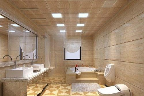 4.由于衛(wèi)生間的濕氣比較重,吊頂常常被淋浴的蒸汽包圍,所以衛(wèi)生間漏水時(shí),吊頂?shù)膲毫σ埠艽?。這時(shí)可以把吊頂做成防水性好的PVC扣板,把它安裝在龍骨上遮蔽管道。