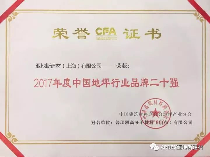 杰出品牌 | 亞地斯高人氣入選2017年度中國地坪行業(yè)品牌二十強