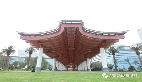 會(huì)議中心的東西兩側(cè)各有一條迎賓長(zhǎng)廊,是整個(gè)會(huì)場(chǎng)的“門面”,也是各國領(lǐng)導(dǎo)人步入會(huì)場(chǎng)必經(jīng)之地。長(zhǎng)廊融入廈門市花鳳凰花和廈門傳統(tǒng)建筑山墻的造型,取名“丹冠飛羽”,由48樘“幾”字形銅梁組成,造型獨(dú)特、氣勢(shì)恢宏。